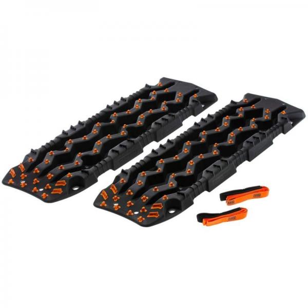 La mezcla especial de material de poliolefina permite la mejor tracción y al mismo tiempo poder flexionarse bajo el peso del vehículo en terreno inestable.